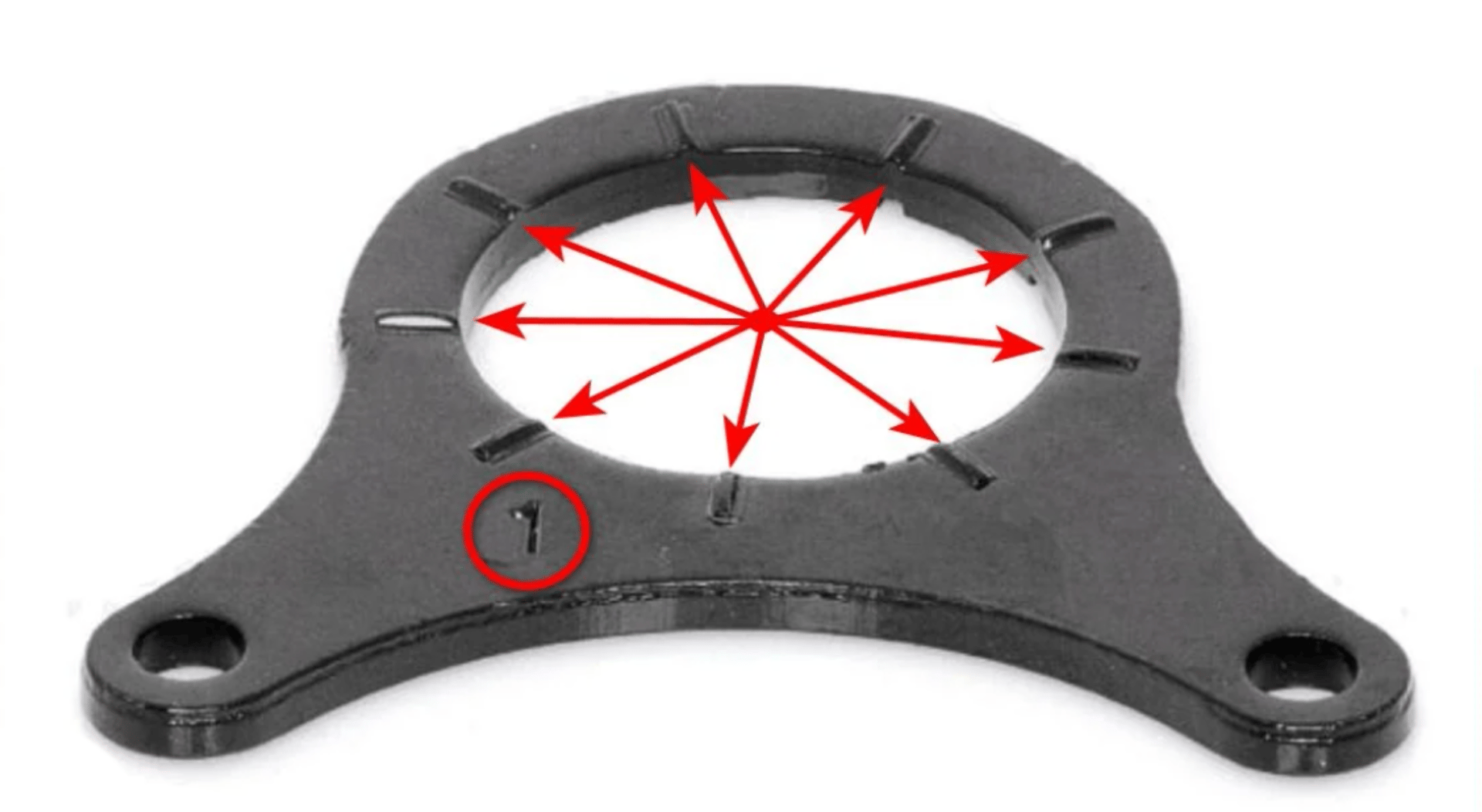 The BBSHD is a torque monster. Left unrestrained, it’ll literally twist itself in your bottom bracket shell over time — chewing the paint, gouging the metal, and working loose. Bafang’s stock two-nut lock ring system is bad. It bites into your bottom bracket shell and causes permanent damage while not actually holding the motor in place long term. The default lock ring has teeth: